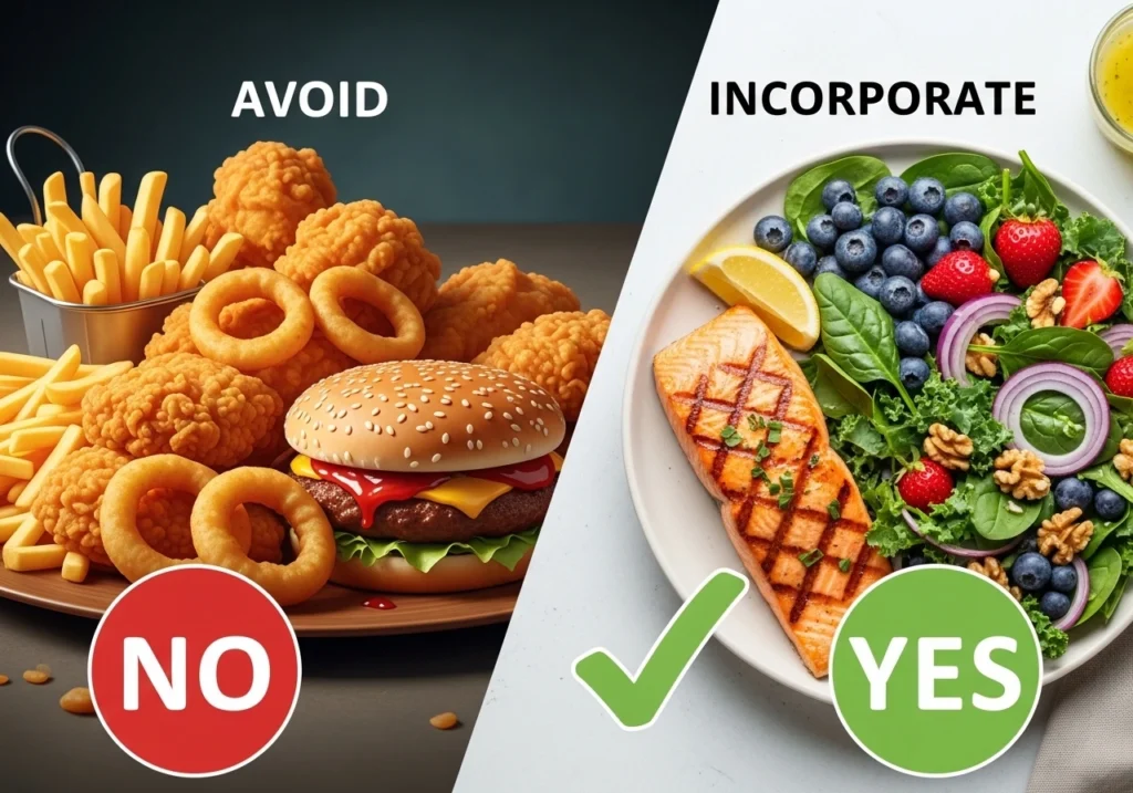 Certain foods can trigger oil production and cause your skin to become more oily. A balanced diet with lots of water, fruits, and vegetables can help regulate oil production.