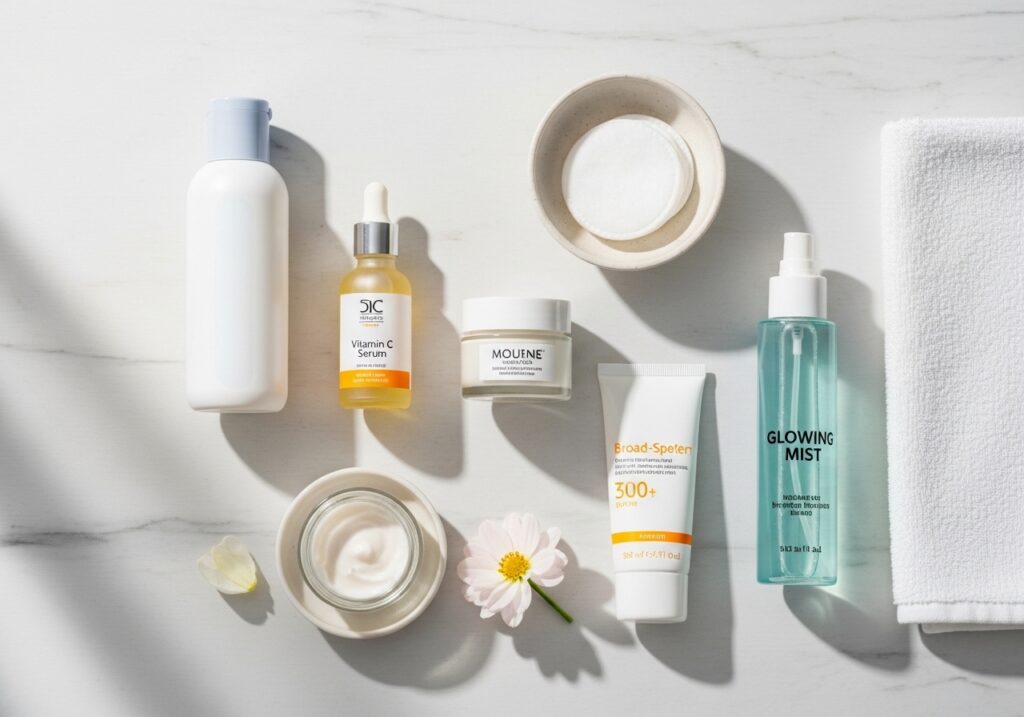 Before diving into steps, here are the core skincare products for glowing skin that every routine should include