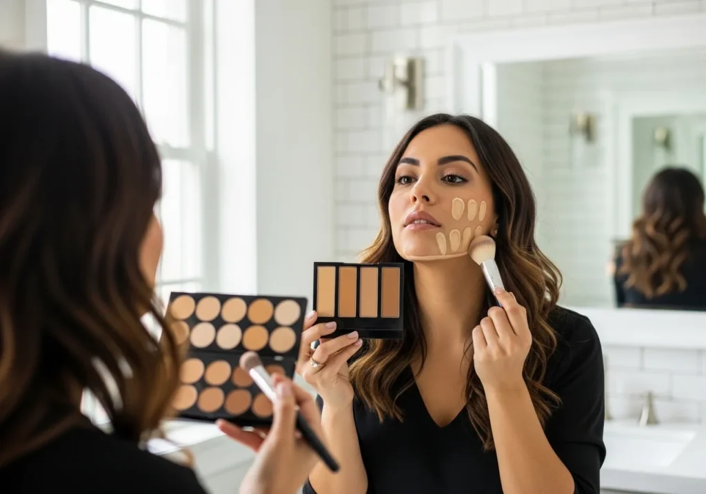 Concealer handles dark circles, blemishes, and redness. Use a shade one tone lighter than your foundation under the eyes. Apply concealer after foundation so you use less product overall.